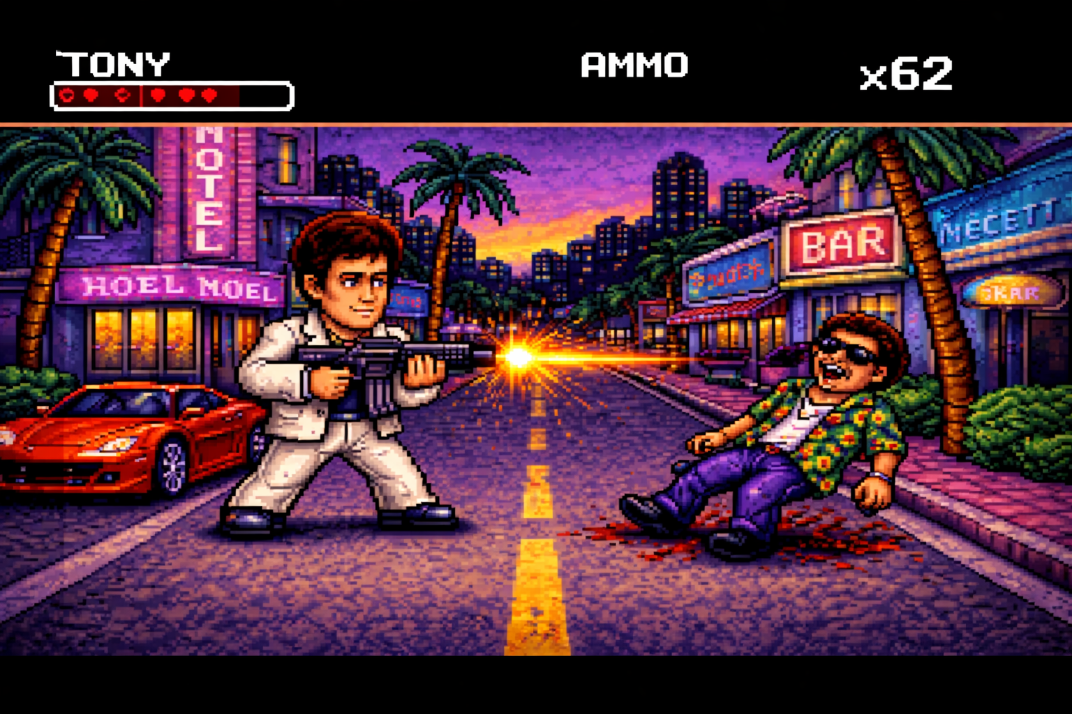 Set in the neon-soaked streets of 1980s Miami, Scarface – Tony’s Street Combat is a classic 2D side-scrolling arcade brawler inspired by retro console action games. You rise through the criminal underworld one fight at a time, carving your path from small-time hustler to undisputed king of the streets.